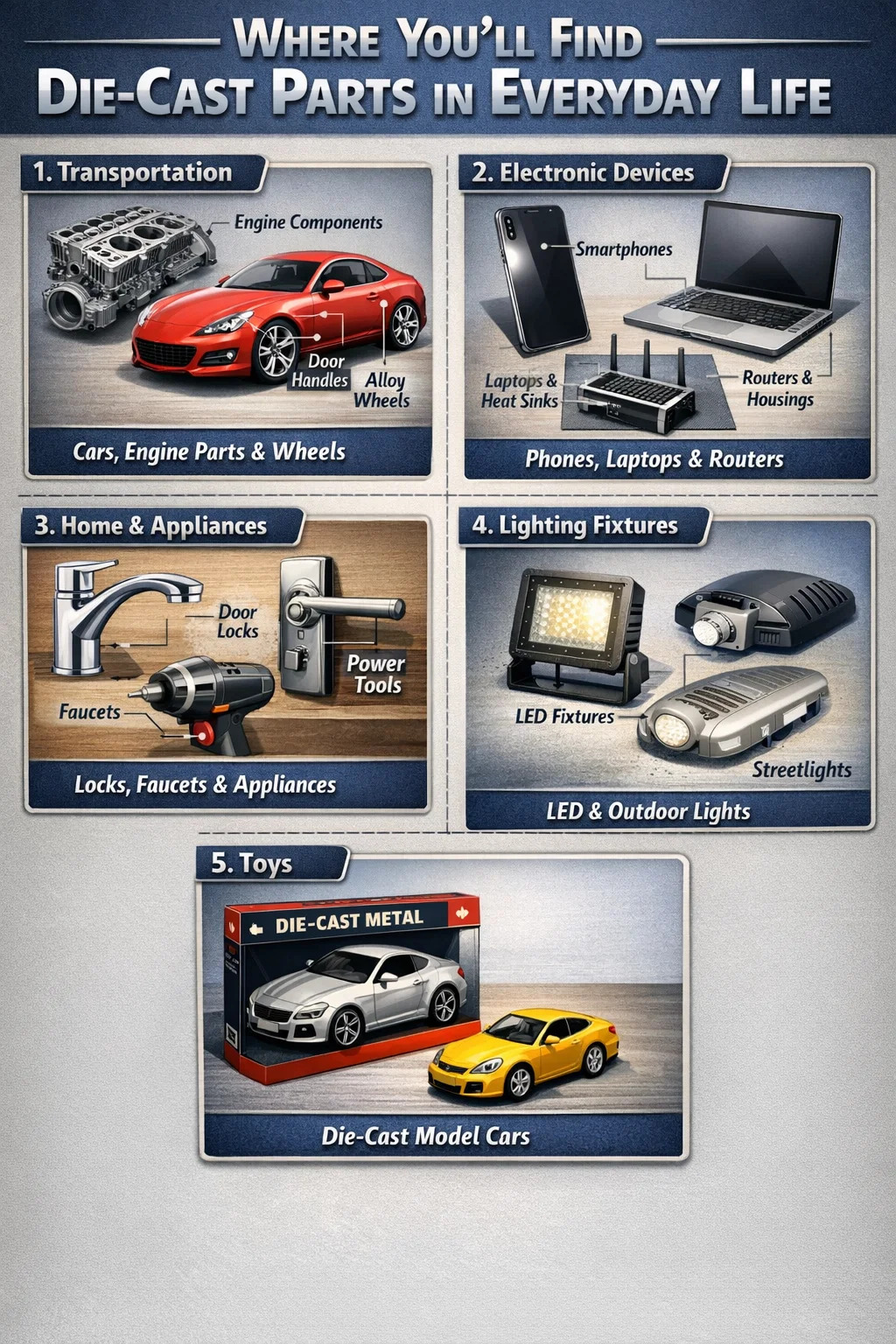 Specimina realistica: Haec processus fabricandi permittit subtilia in consilio currus, dans illud pondus substantiale in manu, et minus probabile facit si omiserit erumpere. Hoc est exemplum classici iacti toy.